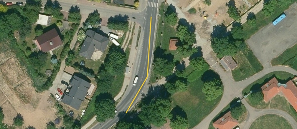 Na krátkém úseku Mladoboleslavské ulice (viz zákres ve fotografii) bude provoz v 1. etapě řízen kyvadlově pomocí dočasného semaforu, ve 2. etapě bude u křižovatky Mladoboleslavská x Semtínská řídit provoz poučený pracovník stavby.