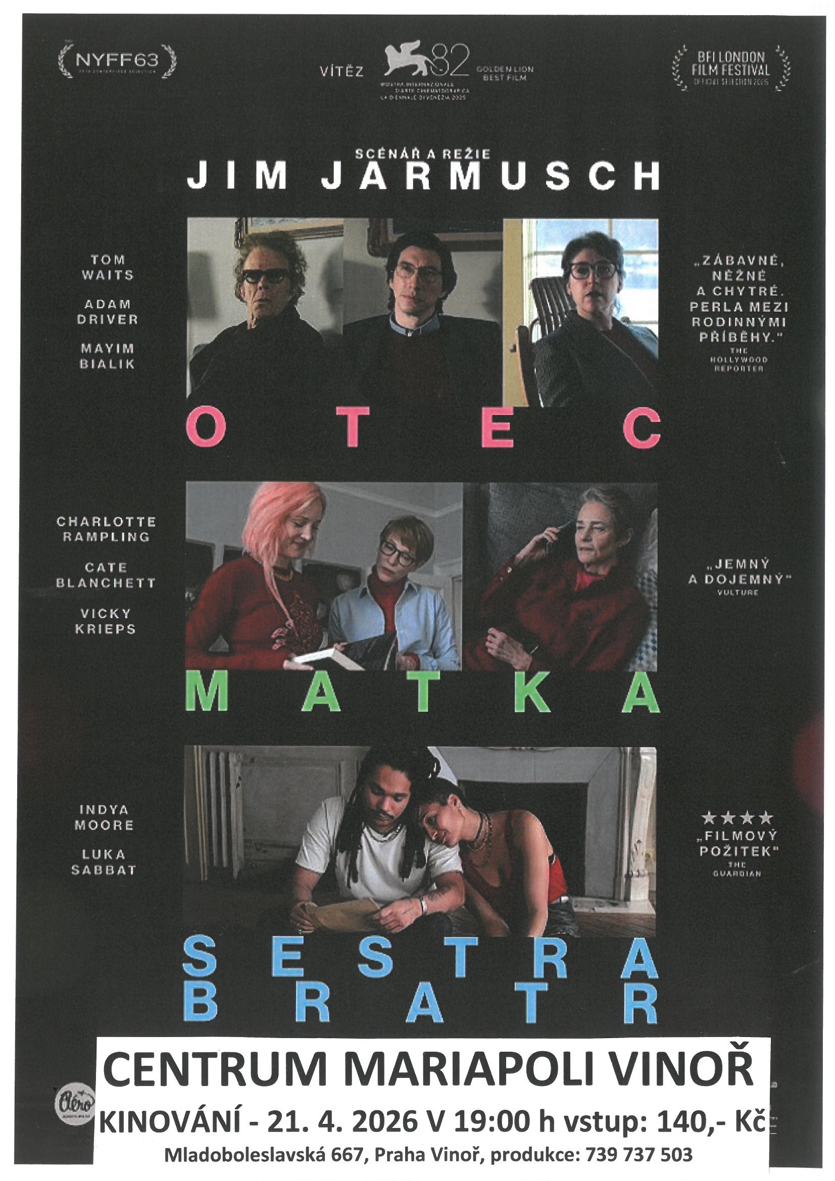 Dospělí sourozenci, jejich tak nějak vzdálení rodiče, nerozlučné pouto a vše mezi tím. Tom WaitsAdam DriverVicky Krieps či Cate Blanchett excelují v triu jemně humorných příběhů, plných vřele nemotorných rodinných rozhovorů. Ikona amerického nezávislého filmu Jim Jarmusch s lehkostí, vtipem a stylovou hravostí ukazuje, že společné chvíle mohou být krásné právě díky své nedokonalosti. Ať už jste na severovýchodě USA, v Dublinu nebo Paříži. Za svou upřímnou empatii snímek získal na festivalu v Benátkách Zlatého lva pro nejlepší film. (Aerofilms)