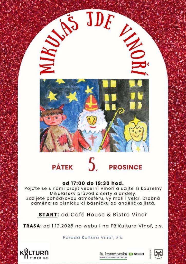 Trasa průvodu bude zveřejněna 1. 12. 2025 na www.kulturavinor.cz.