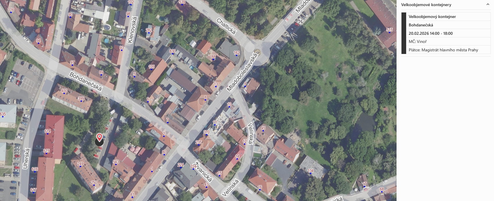 Kontejner bude přistaven v ulici Bohdanečská (mezi domy čp. 250 a čp. 400) v pátek 20.02.2026 od 14:00 – 18:00 hodin.