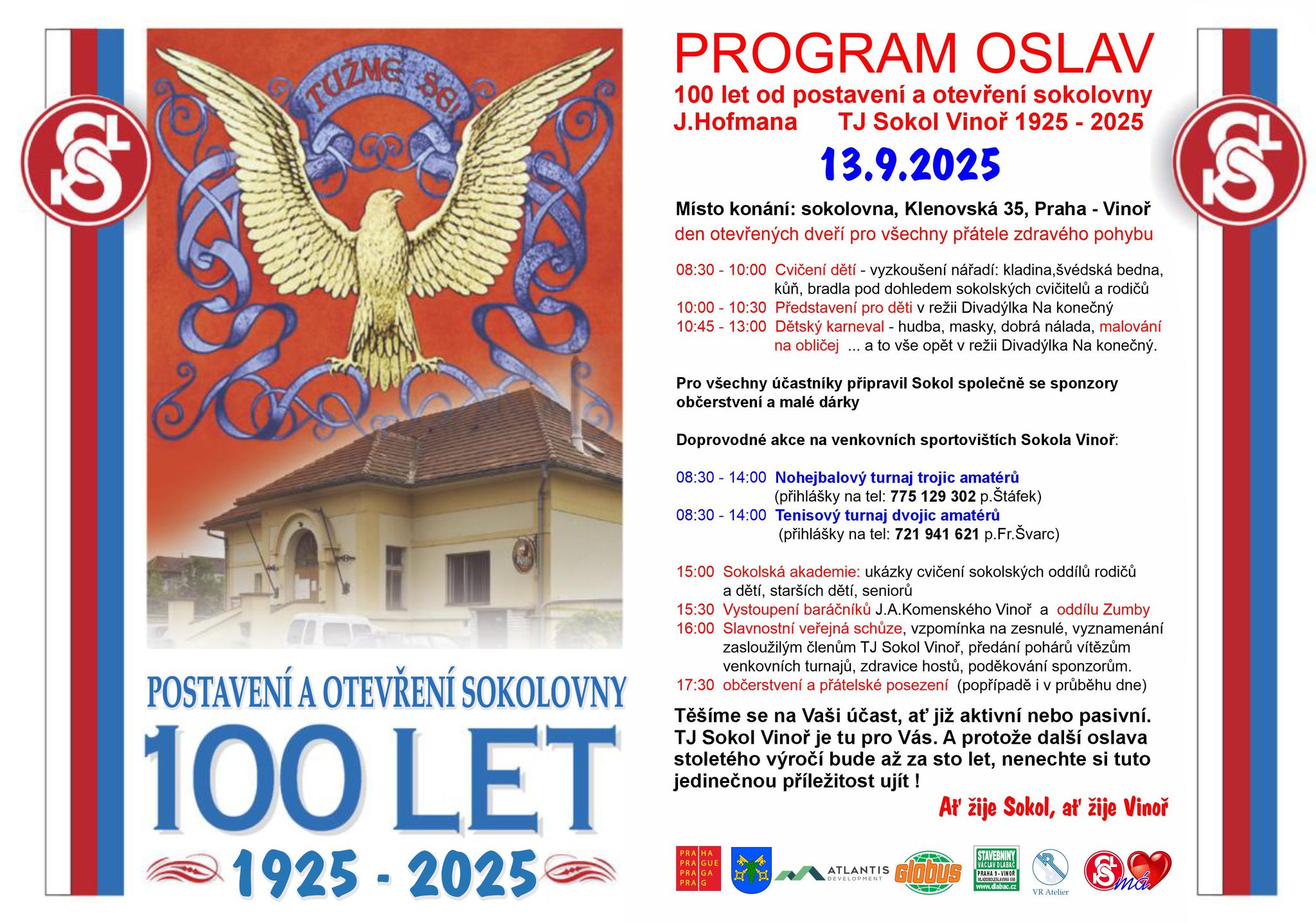 Sobota 13. 9. 2025 | Klenovská 35 | TJ Sokol Vinoř (1925–2025)
