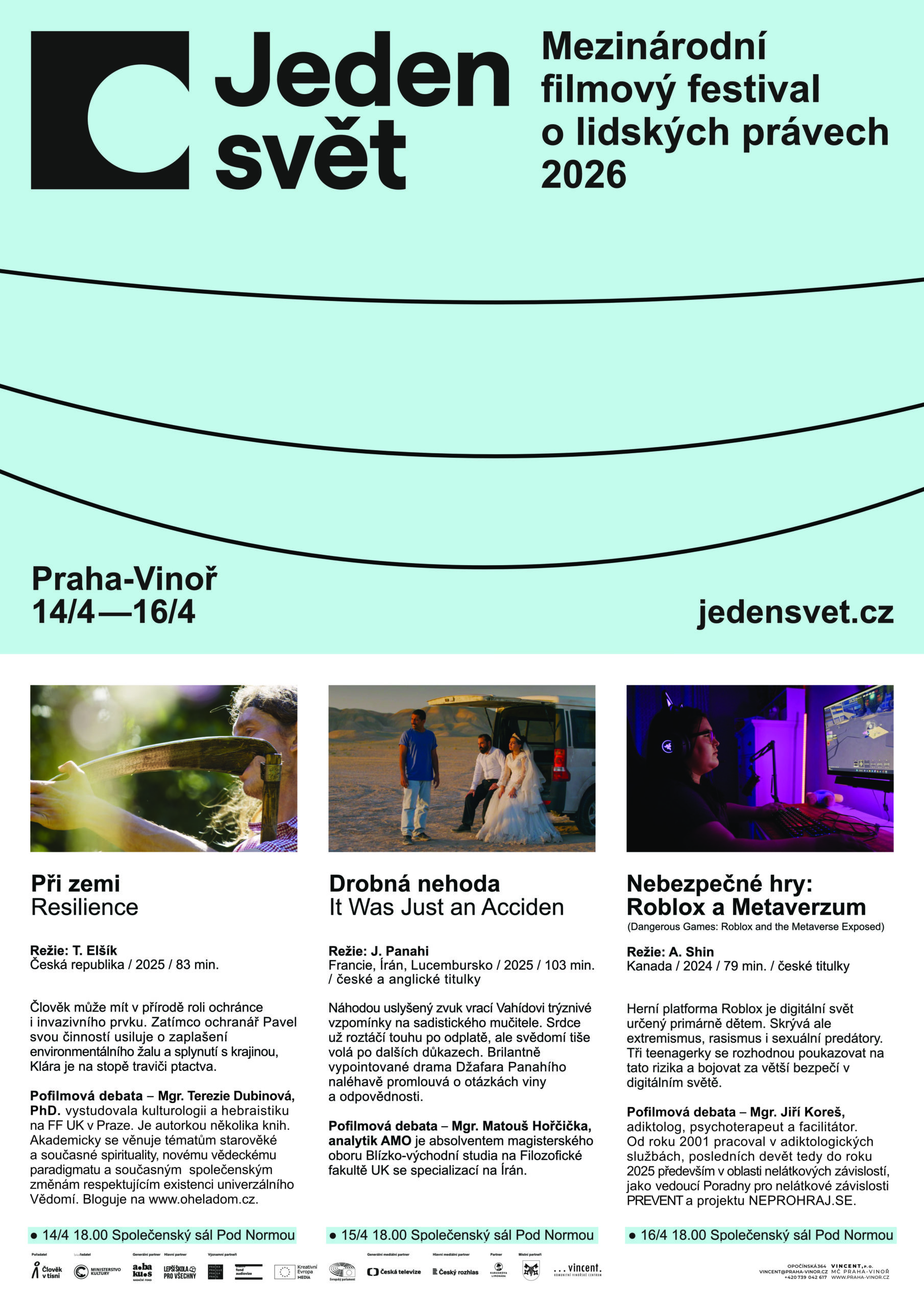 Mezinárodní filmový festival o lidských právech 2026 (14.-16. 4. ve Společenském sále Pod Normou). Podrobnosti najdete  zde a na plakátu níže.