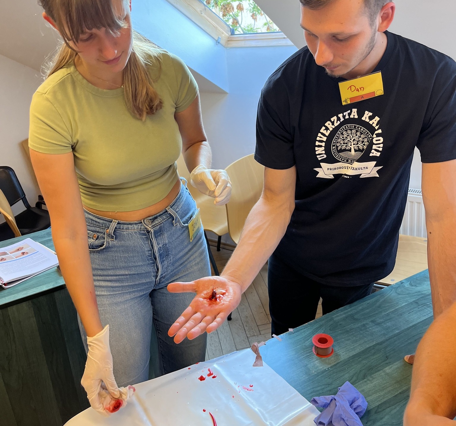Nečeká Vás jen teorie a sezení na židli — kurz je prakticky zaměřený a zážitkový. Budeme pracovat s modelovými situacemi, realistickými scénáři a ano, čeká nás i „krev“ a simulace skutečných úrazů. Smyslem je vyzkoušet si reakce v bezpečném prostředí tak, abychom v reálné situaci dokázali jednat klidně a efektivně.