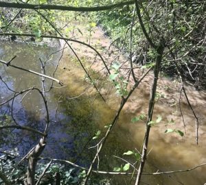 Víme, že tzv. bezejmenný potok je ve strašném stavu. Jeho velkou bolestí je, že čas od času se vypne čerpadlo, které z Labětínské žene splašky do řádné kanalizace. A pak všechno teče do bezejmenného potoka. Majitel čerpadla se snaží situaci systémově vyřešit vystrojením nového čerpadla a novým napojením na kanalizaci, ale kvůli obtížné dohodě s vlastníky potřebných pozemků se to hýbe pomalu.