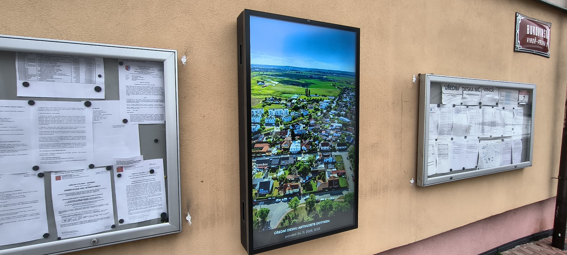V pondělí byl na budově úřadu Městské části Praha-Vinoř nainstalován panel, který slouží jako moderní venkovní úřední deska.