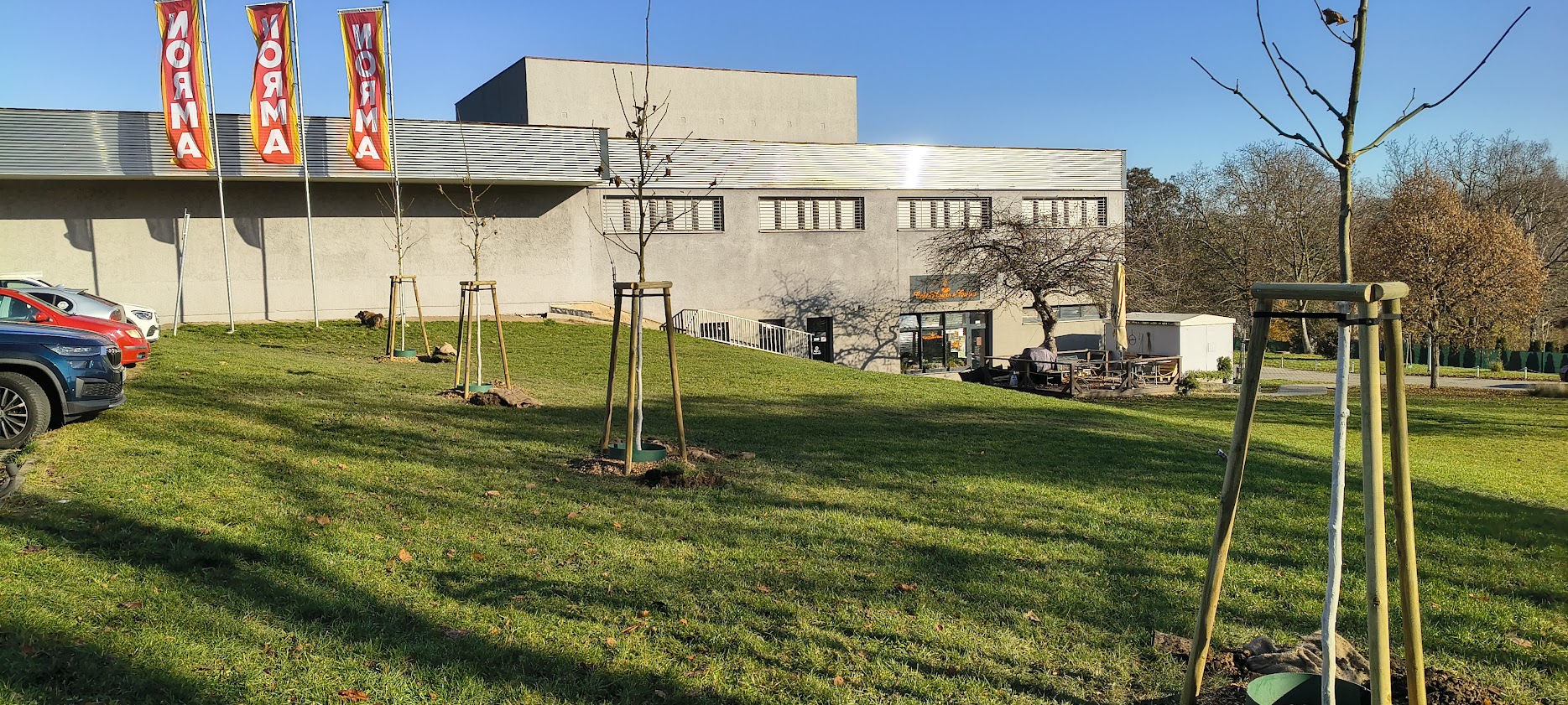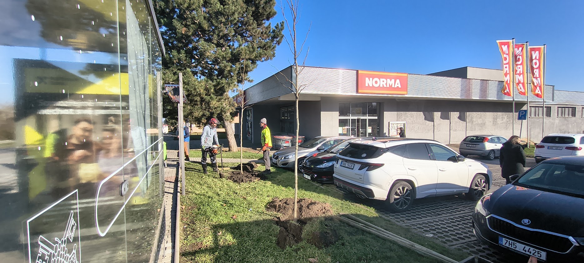 Nové stromy u parkoviště u Normy