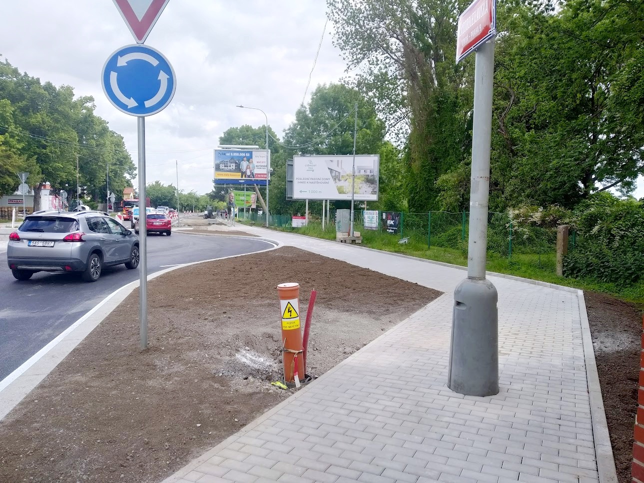 Z pohledu řidičů bude „kruháč“ hotový, z pohledu chodců má chodník okolo jednu vadu na kráse. Naštěstí jen dočasnou.