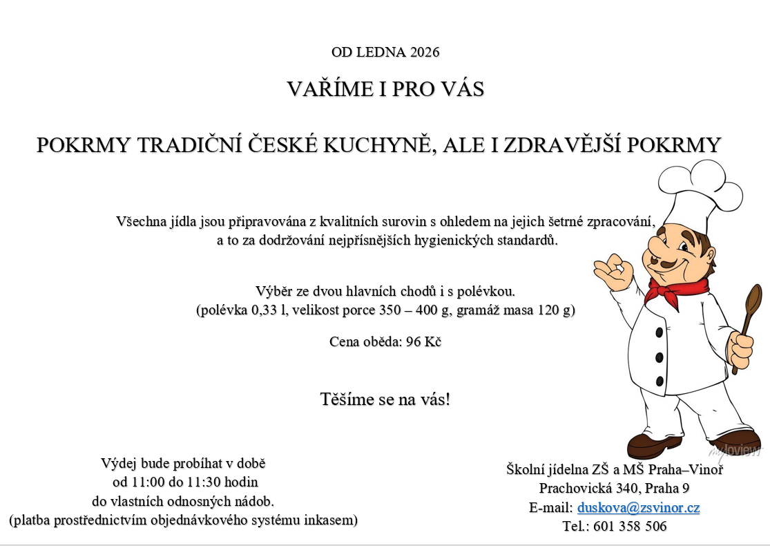 Od ledna 2026 bude školní jídelna vinořské základní školy vařit nejen pro žáky a žákyně, ale i pro veřejnost.