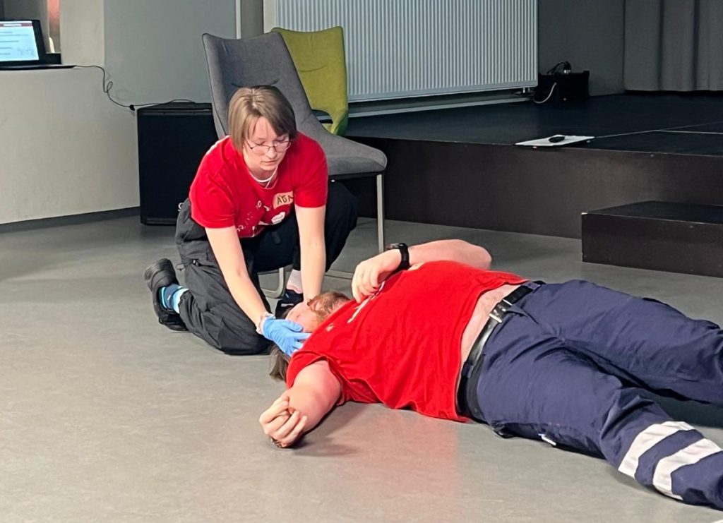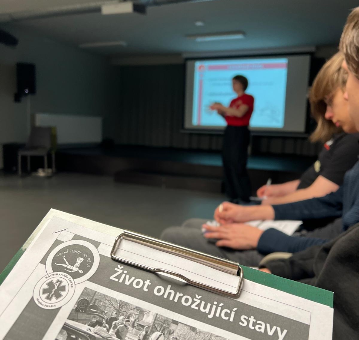 Šlo o kurz, kdy účastníci jen nesedí a nespí, ale učí se zážitkem. Každý si vyzkoušel na figurantovi vyzkoušel, jak správně zaklonit dospělému člověku hlavu. Nebo jak moc je potřeba tlačit, když je nutné zastavit tepenné krvácení. Nebo si nanečisto mohli vyzkoušet použití defibrilátoru.