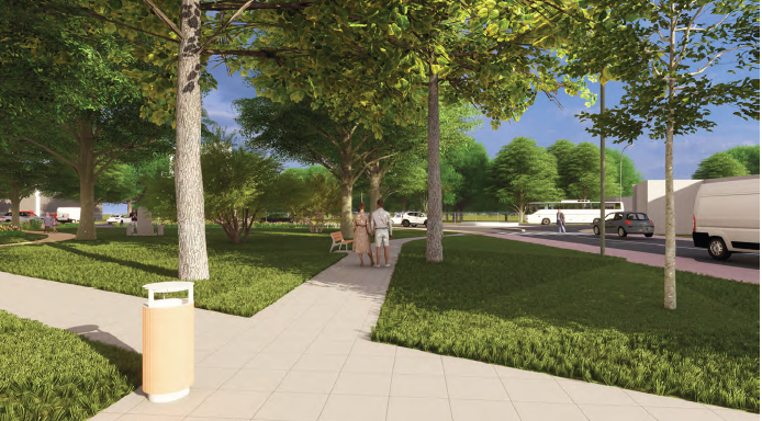 Centrální osová partie bude doplněna reprezentativní výsadbu stínomilných trvalek a nižších keřů. Podmínkou prosperity tohoto porostu bude závlahový systém.