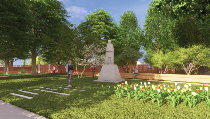 Nedílnou součástí obnovy parku bude též nová průčelní zeď hřbitova. Zeď bude zhotovena z povětrnostně odolné oceli – cortenu.