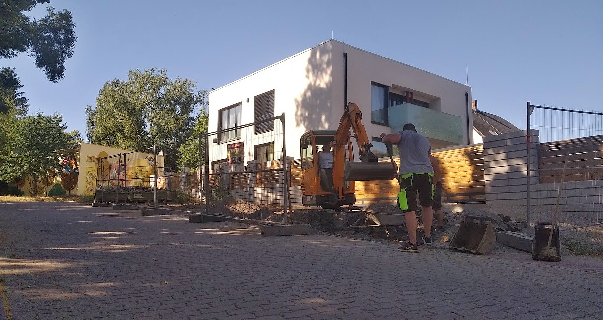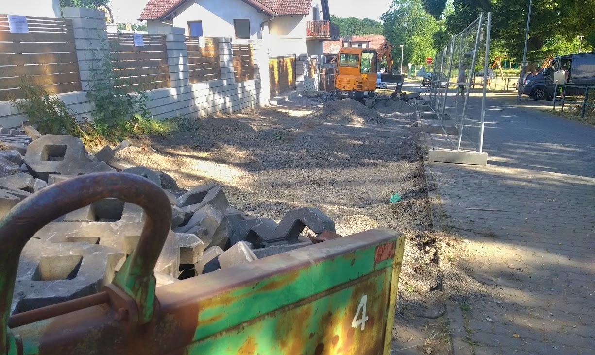 Zatravňovací dlažba se vyrovná, upraví se věčně rozježděné nároží křižovatky s Prachovickou, a doplní se jak vodorovné, tak svislé dopravní značení.