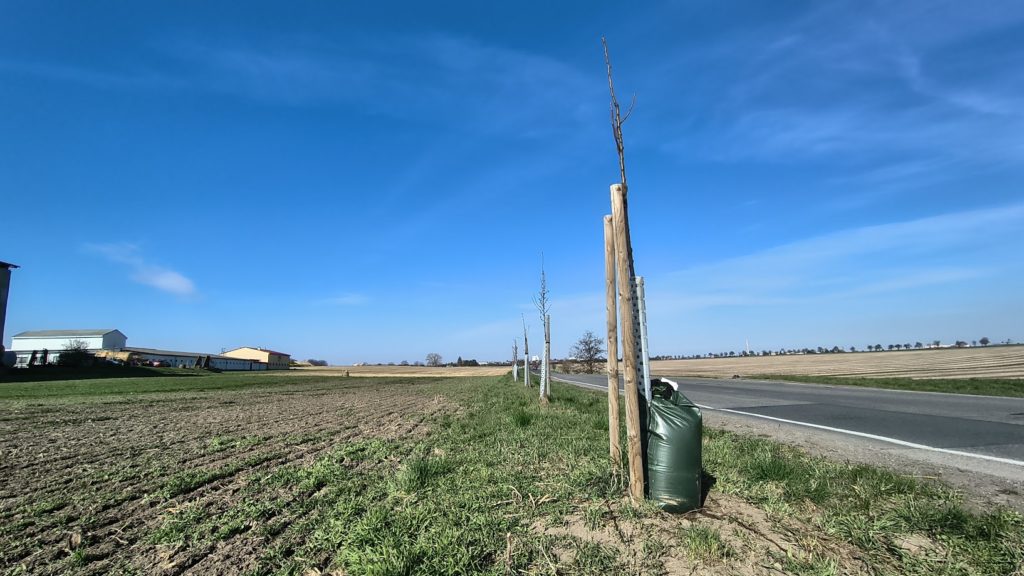 U golfového hřiště jsme nahradili tři zničené pyramidální duby v tamní aleji.  Že stromy napadne bekyně, to pochopíme, ale že napadne někoho rozjezdit stromy autem, to pobrat neumíme.
