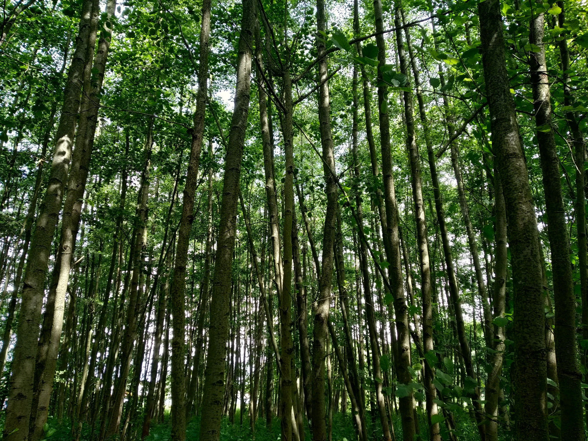 Olšina. Stromy rostou příliš na husto, žádnému z nich to neprospívá.