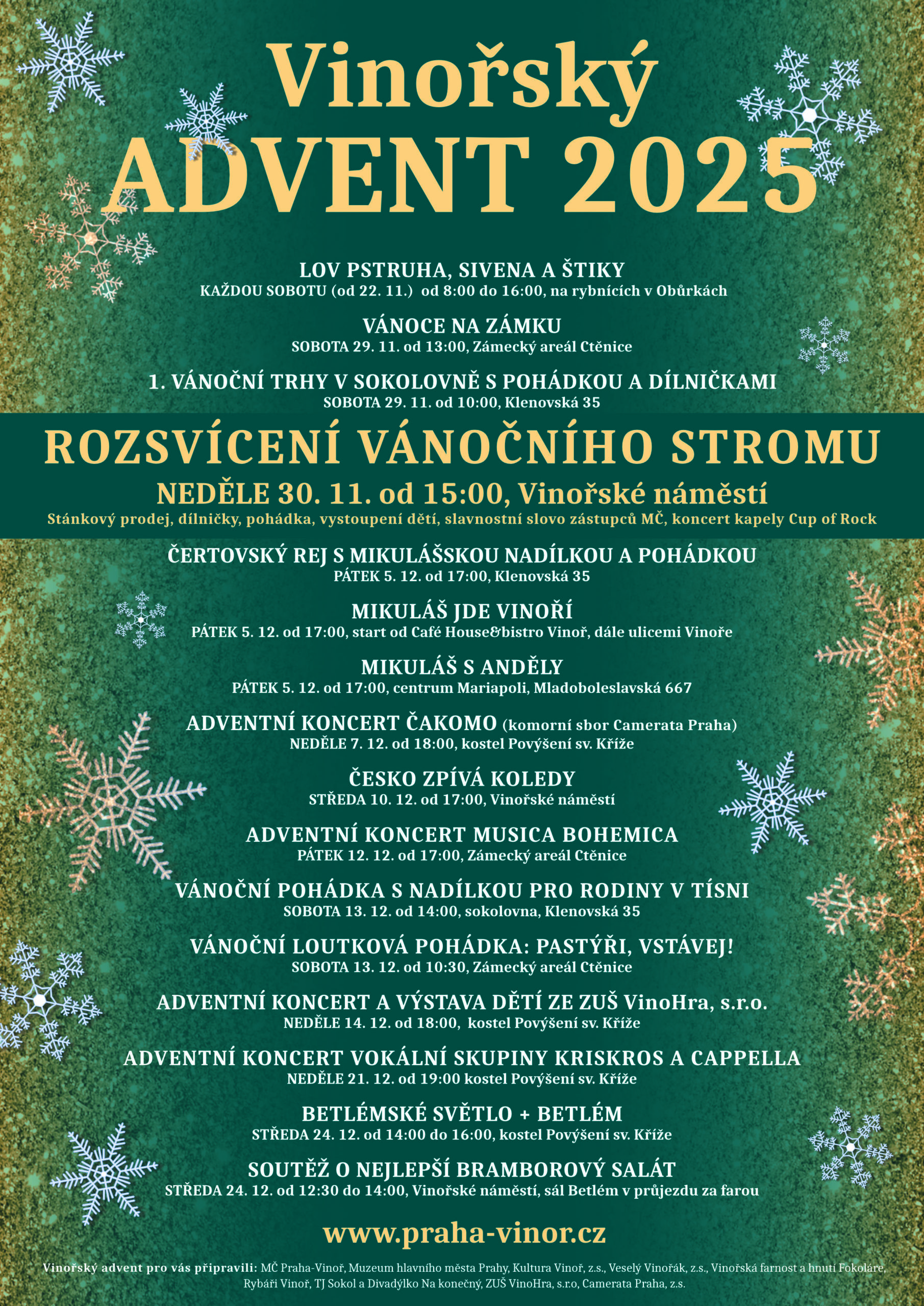 ROZSVÍCENÍ VÁNOČNÍHO STROMU a Vinořský ADVENT 2025